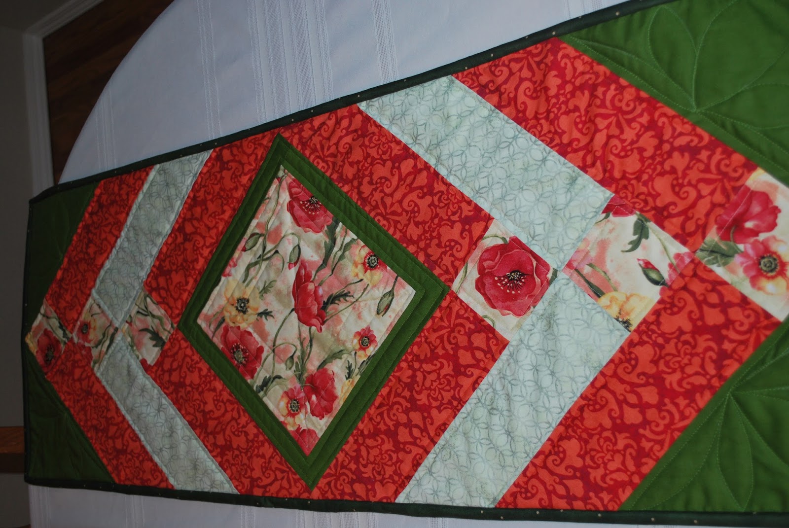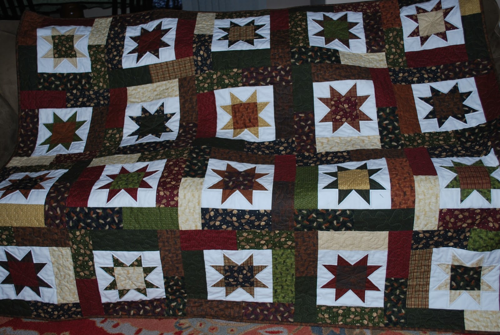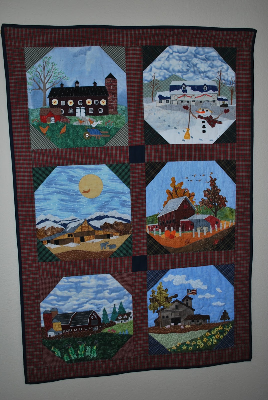 We both have a quilt that has 6 different blocks. Come January we will switch them so we get to look at all our work all year long without getting bored with it.