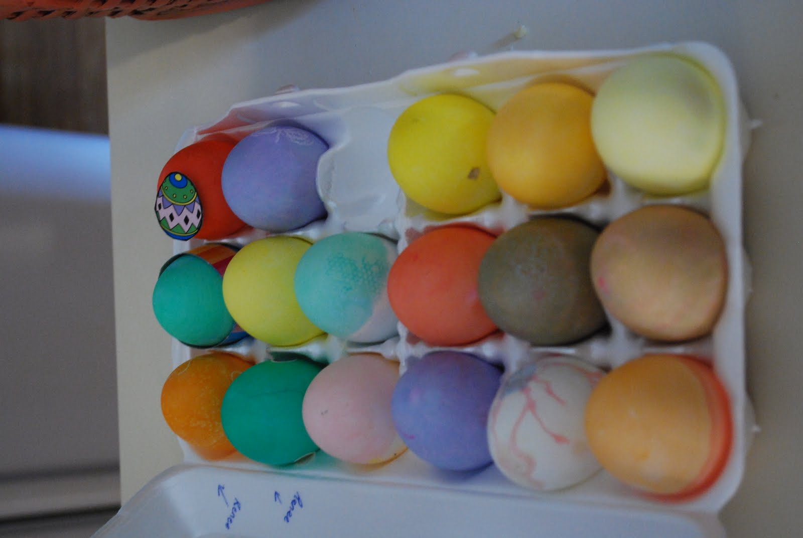 Gotta love Ryan's creativity here - note the "eyeball" Easter egg he painted instead of dipped. He loves it so, a week later, its still not eaten. I think it may become fossilized :-0