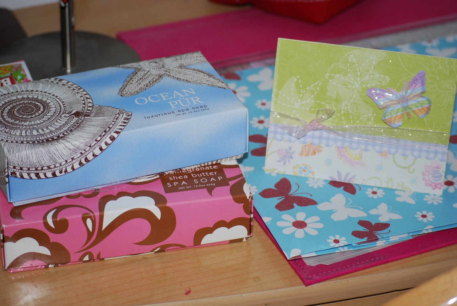 9 - breakfast in bed,(cinnamon rolls) with presents of a new watch and fabulous smelling soaps and her homemade card.