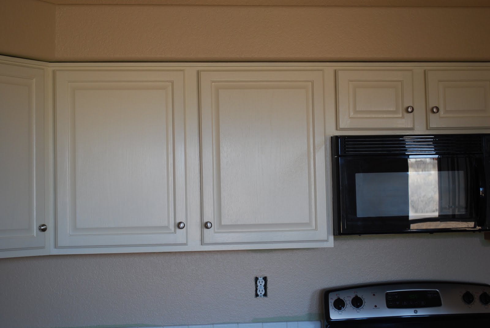 Not a very good picture, but this was as the painter was painting other parts of the kitchen. Its more restful, and will look good with my red dishes above the cabinets.