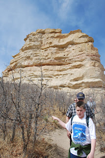 This is the monument we were looking to get to. Here we were only about fifteen minutes away from it. In reality, it probably took us between 45 minutes and an hour to hike there from the car. It definitely just comes out nowhere . . . trees then a big rock. There are a few other rock formations similar to this against the hills and mountains but this is one of the few that is just in the middle of the forest. It is why my town is named Monument. Its high enough in the foothills of the mountains that we could look out on our town.
