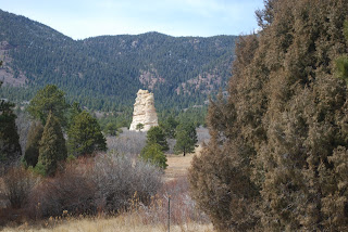 This is the monument we were looking to get to. Here we were only about fifteen minutes away from it. In reality, it probably took us between 45 minutes and an hour to hike there from the car. It definitely just comes out nowhere . . . trees then a big rock. There are a few other rock formations similar to this against the hills and mountains but this is one of the few that is just in the middle of the forest. It is why my town is named Monument. Its high enough in the foothills of the mountains that we could look out on our town.