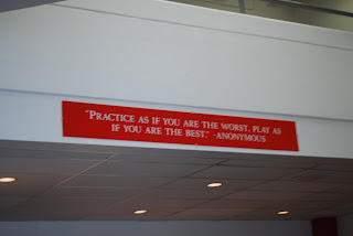 There is a moving movie at the beginning of the tour. What moves me most is the para-Olympic athletes. It reminds me to "never say never" again. What these people do without their limbs and even lower torsos is pretty impressive. It also helps remind you the true thrill of victory, reliving it on the faces of those we remember well like Dan Janssen and Mary Lou Retton - fun memories! I love this saying in one of the buildings. As true for playing the piano as it is for athletics.