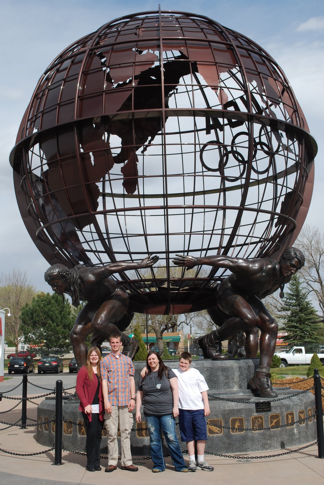 There are only three such places in the U.S. - Lake Placid, NY, and Chula Vista, CA, are the others. Colorado Springs is the smallest, at only 35 acres, but works with the most athletes. Here we are outside the building in front of the metal world sculpture.