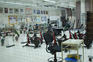 That's because of all the sophisticated training equipment they have here. They have low-gravity treadmills to reduce the wear on the athletes who use their legs so much, all kinds of testing equipment to measure stride and step and speed, etc. I have been here twice, however, and never once seen an athlete on any of this equipment. Maybe this is just the "show room."