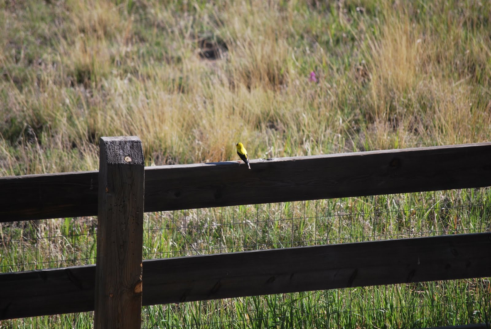 Since I had the camera out, I thought I'd see what else was in the neighborhood, and to my delight, a beautiful goldfinch flew right onto my back fence. Isn't she pretty? I miss the cardinals still, but love the bluebirds and goldfinches.