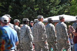 Here you see Pike's Peak in the background. The big boys took the cog railway up it yesterday afternoon, then when they returned, they decided to hike up the mountain in front of it. As they relayed the hike to me, it was so steep it made the one at the family reunion seem flat. BigBuddy said they'd set a goal of taking ten steps, or up to the next tree, and finally made it to the top, and saw some amazing views. Among them, the trail that made a zig zag up to the top, instead of going straight up it like they had just done. In all their excitement, they missed the easy trail, but this was a week of Big Adventure, so this just added to their stories to tell.