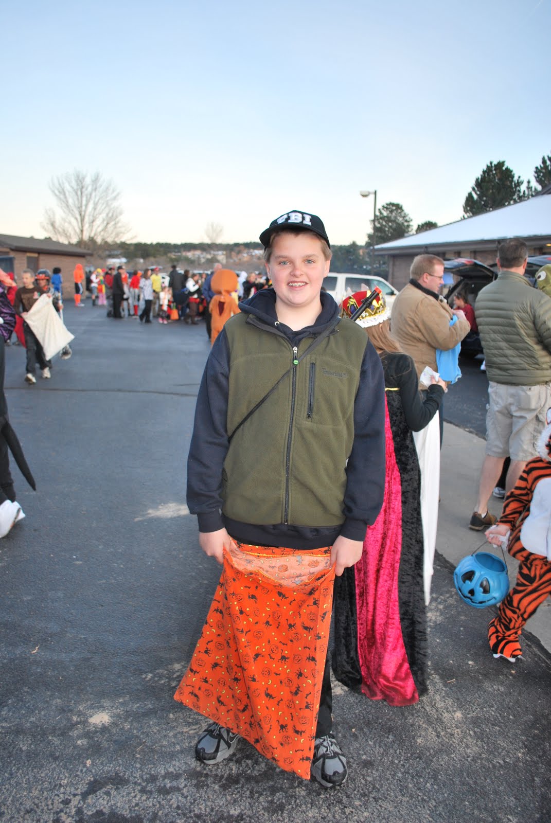 I changed when it was time for Trunk or Treat up at the church. When the sun goes down here, it gets cold. I wore gloves, a coat, a scarf, and the most essential - mittens, to pass out the Halloween candy.