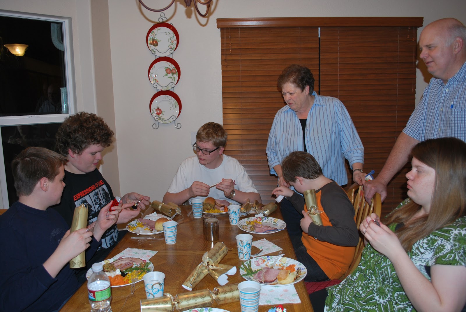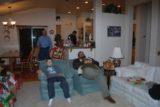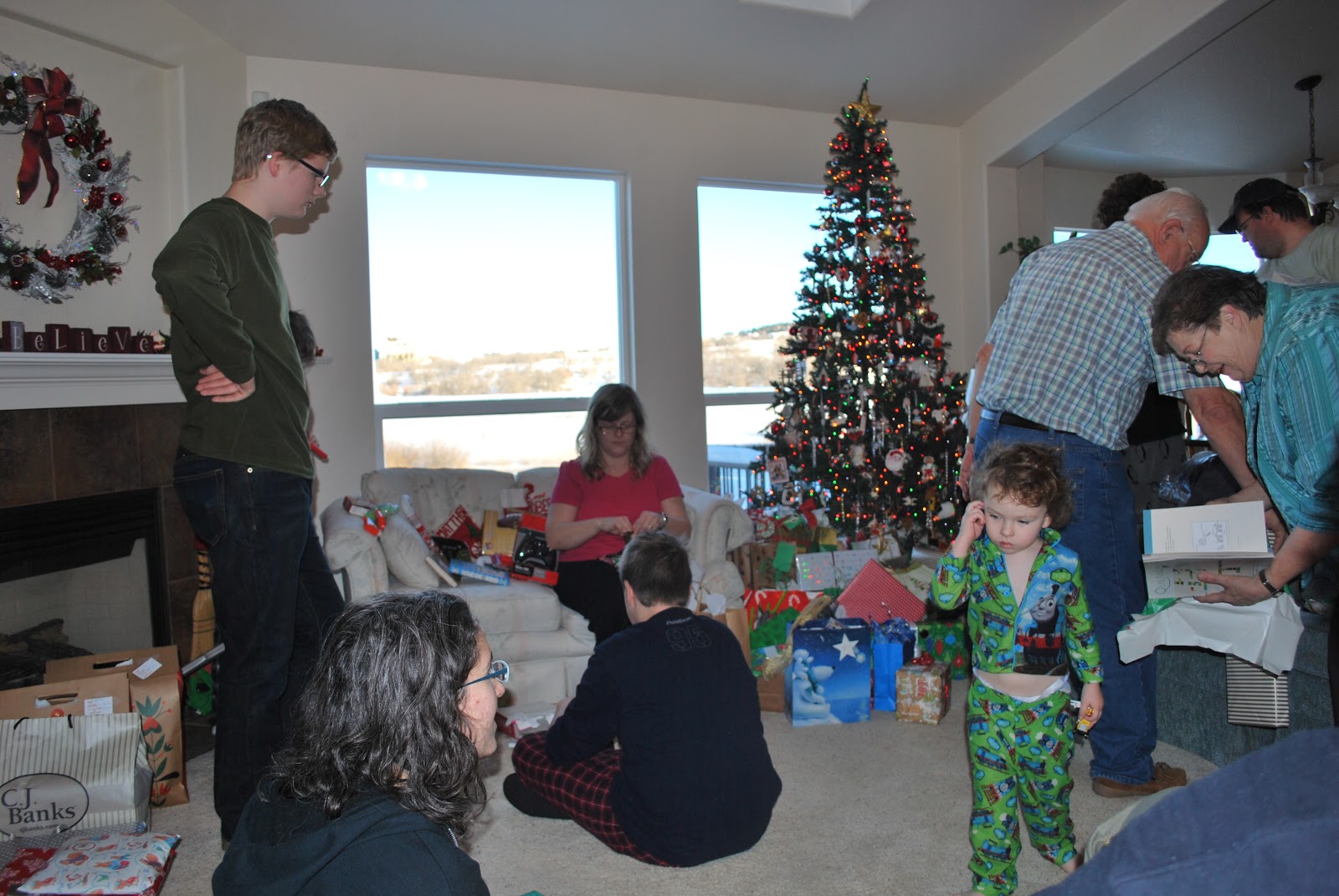 Christmas morning . . . since we'd already had Christmas morning, this was a let down for my children, watching everyone else get their cool stuff. They got a little stuff, but it wasn't the same. Still, I was glad we weren't at my house in the morning, but at my mom's. With half of my children gone, it was good for me to have lots of other loved ones around to enjoy. It was very sweet of everyone to come to church and hear the choir's musical program. I was one of the accompanists and even had a solo, so it was nice to feel their support. It was also good in the midst of the presents and wrappings, that we could remember the real reason for the season. I was glad we could stop in the middle of the day to worship. Afterwards everyone came to my house for a casual Christmas buffet, with more food than we could all eat. I'm just finishing it finally today! There was Skyping going on with my nephew on a mission and lots of visiting and playing games. Good to be together with those that were here.