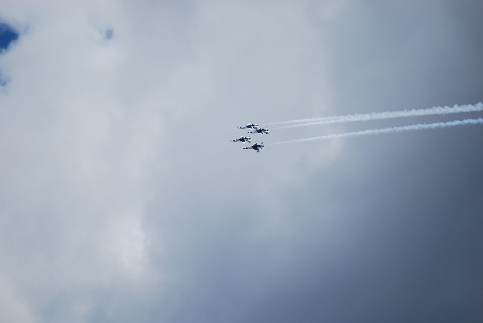 Then they come back and do it again, right over our heads. Isn't it neat to see clearly the thunderbirds painted on top of them.
