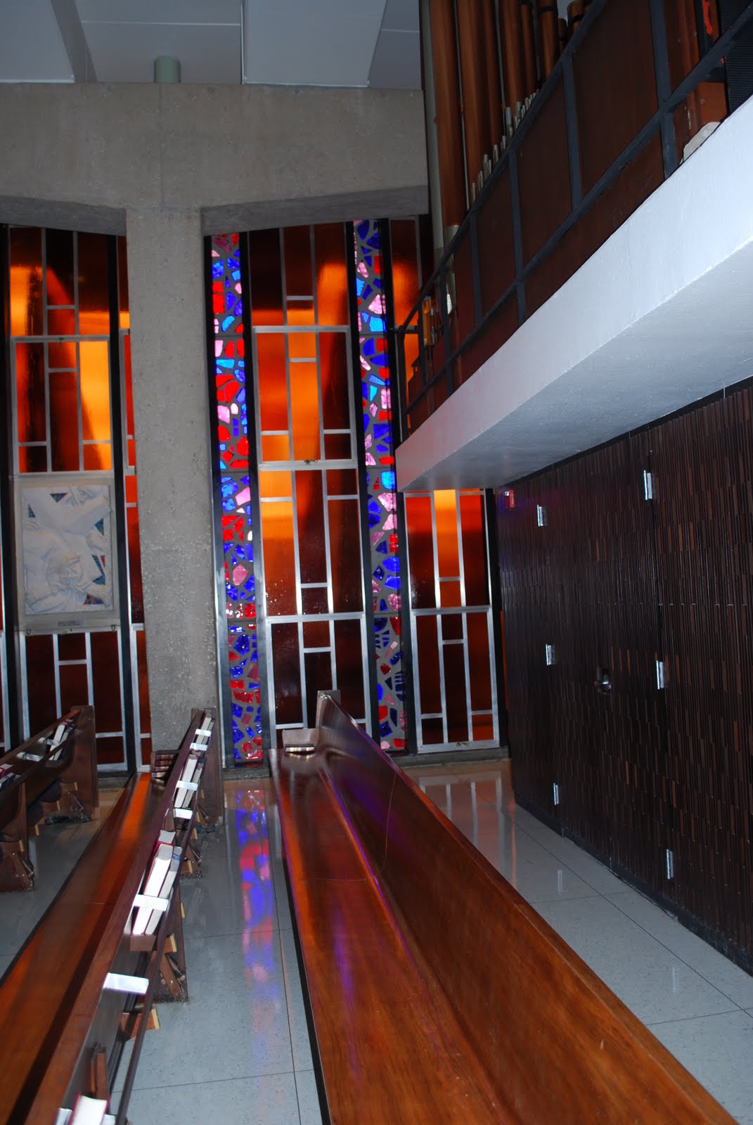 They turn right in front of us. It's a bit cool, mid-50's, there are clouds mixed with blue skies and we're wearing coats.