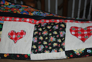 Among the favorite hearts in our house are on the Mary Englebreit quilt my mom made for us. I'm currently keeping it upstairs on my sofa as a throw. The colors and the feel just make me happy!