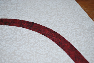 I know its not the perfect curve, but you know, I'm learning. I am actually happy with how the hand appliqueing went. I have no idea if this is how you're supposed to do it, but I read the directions, they weren't a hundred percent clear, so this was my best interpretation.