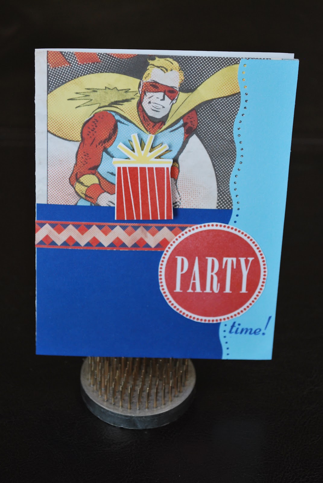 LittleBuddy's birthday card. The present is pop-dotted and took advantage of comic cardstock I had. He loved it. Happy Valentine's Day, Happy Birthday, Happy Baby Shower, always something to celebrate!