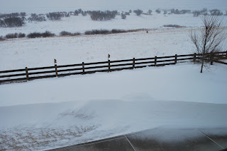 This was taken at the tail end of a storm. It was so amazing to me that there were drifts in the backyard, again like a wave, but right next to it you can see the grass is showing through, and our back patio, hardly touched. Weird and amazing to me at the same time.