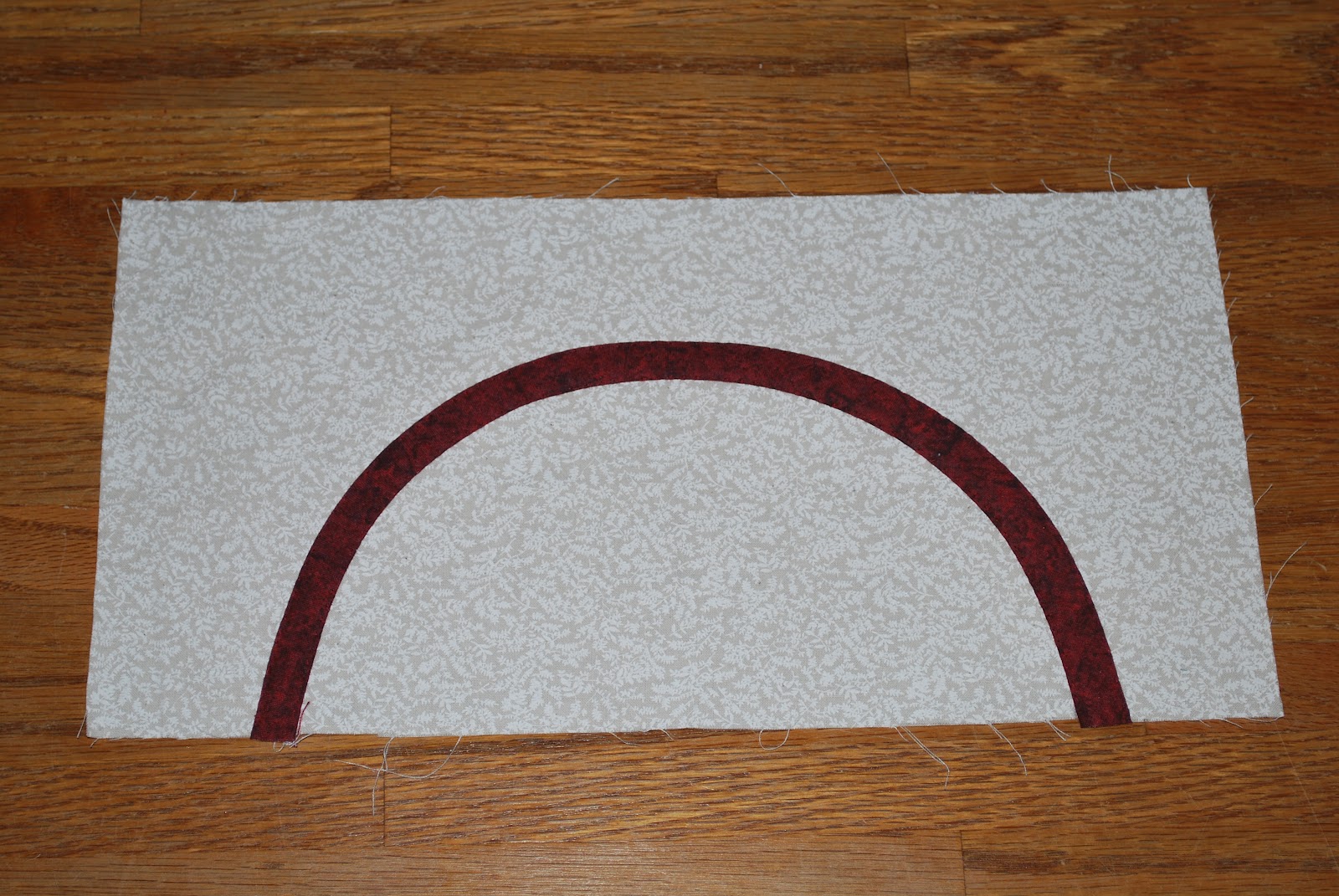 I know its not the perfect curve, but you know, I'm learning. I am actually happy with how the hand appliqueing went. I have no idea if this is how you're supposed to do it, but I read the directions, they weren't a hundred percent clear, so this was my best interpretation.