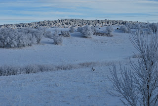 This morning, we woke up to this. Everything covered in white. The branches, the trees, the weeds - all iced in white frosting. It's somewhat sunny today so it didn't last, but I'm excited every time nature showcases her peculiar beauties. We've seen this same scene a couple of times lately.