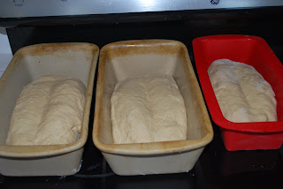 Note that when you first put them in the pans that you've sprayed with cooking spray, I was told by Liz to take the side of your hand and put a dent in them down the middle. This way when they rise, they are more level.
