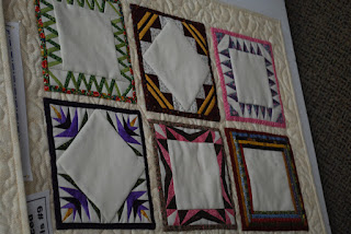 In one of the quilt shops we saw quilted labels. We also learned how to make photo labels for our quilts. Labeling quilts was not something I'd given much thought to before. Another surprise, was that a lady in our local guild was one of the judges for the show in Salt Lake City. . . Small world.