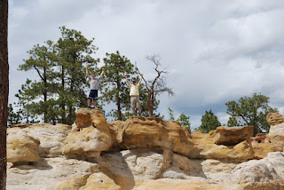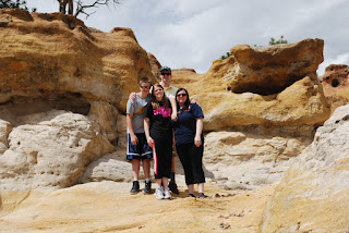 Next to a picnic table, along the side of the winding dirt road was this large formation of rocks. There were several, but this one was so easily accessible that we got out and staked it as our place to play.