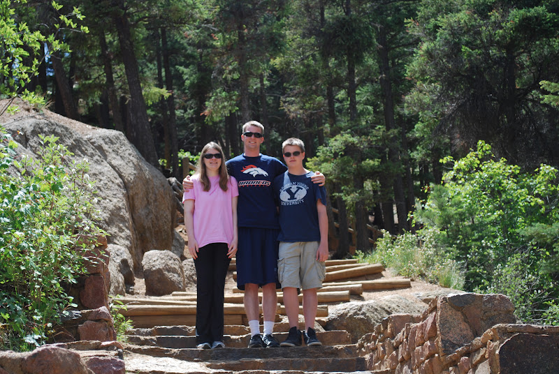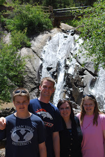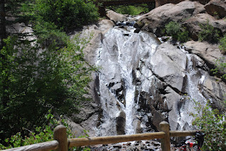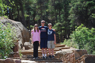 So, yesterday, we went to Helen Hunt Falls, named for Helen Hunt Jackson who was a writer and came to this area for the restorative properties she believed were found in the Rockies in the 1870's. She became a writer after losing her two sons and husband to death before she was 35. She later remarried, and was friends and contemporaries of Dickinson, Emerson, and Holmes. She spent most of her later years advocating for Indian affairs and is buried here in Colorado.The hike is steep but not too long - up and back in fifteen minutes. A snake was spotted, but fortunately, only by the boys. Us girls were grateful to have missed it. We saw eight deer throughout the day, starting in our morning neighborhood walk.