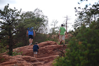 To finish our neighbor's Colorado vacation, we showed them our much smaller scale red rocks at Garden of the Gods. LittleBuddy had called me up during his trip and told me he now loved rock climbing as was "an expert," his exact words :-)