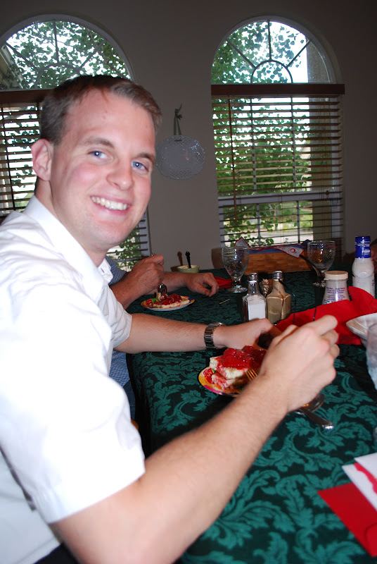 It didn't take very long for a certain young man to turn twenty. We celebrated his birthday with his grandparents and his family on Sunday except for his oldest sister who we miss. That's strawberry cheesecake for dessert, yummo! You gotta celebrate with some sugar on your birthday! Thanks, Mom, for making it!