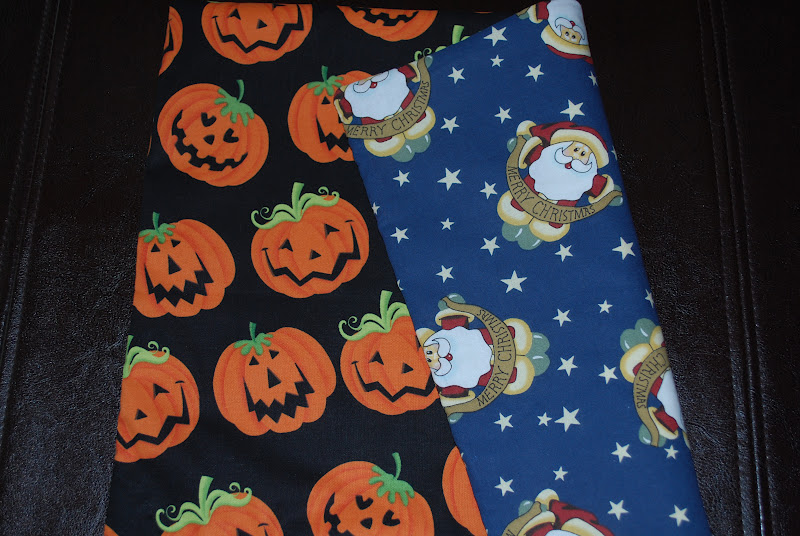 The next two are quilted randomly with a double seam around the edges. Loving how fast and easy these are. Felt lucky to find Easter fabric in August, but everything from here until Winter is already discounted at the craft stores. I guess Valentines will be up in a couple of weeks. . . .sheesh!
