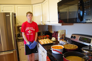 One of my mother's oft-used phrases when I was growing up was, "Many hands make light work." Well, this year I really appreciated the fact that LittleBuddy, MyGirl and BigBuddy all helped make Thanksgiving dinner. The youngest two were at the cannery with me on Tuesday and after having my big boy bring all the heavy boxes down to the basement I went down and foolishly tried to put them up high on the shelf where I could find room. . . only I dropped one box as I was moving things around and when I went down to pick it up, I did a number on my back.