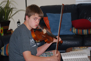 LittleBuddy doing well on the viola. Despite his serious look and obvious teenage attitude, he's a good kid, and still enjoys hanging out with me, so no complaints. I actually love his musical concerts, but don't dare sit in the room while he's practicing. . . wouldn't want to jinx anything, you know? He went fishing with BigBuddy yesterday. Someday they'll catch fish, until then its good for them to enjoy their time together before BigBuddy goes back to school in January.
