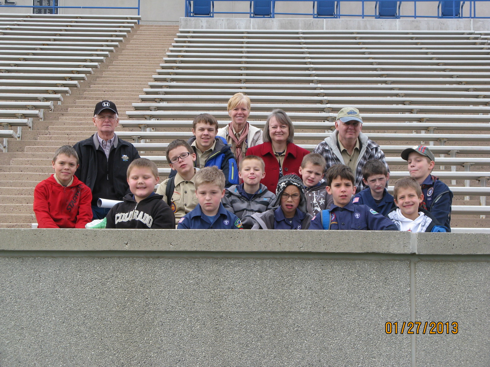 Everything took place inside or outside the Stadium where the Cadets have football games and where graduation takes place. Our boys were really fun and excited to participate in everything. They're eager to do everything we're teaching them each week also. I know that BSA is changing policies soon. . . guess we'll wait and see how it all works out in the future.Oh, and as for my exercise plan. . . hiking up and down all the stairs at the stadium twice that day, that counts!