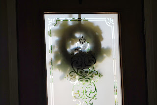 One of our funnest surprises of the summer is the birds nest that was laid in our front door wreath. This is what we see from standing in our house. The shadow you see of the bird on the lower left, is the mother feeding her five babies. We were surprised one day to see the nest, then two eggs, then five, and the mother sitting on it regularly for a couple of weeks. Then, a week ago Saturday, the first egg hatched.