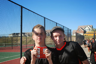 Tennis season is just about over. I didn't know how high school tennis works because I went to high school in Kent, Washington. They don't play tennis in Western Washington because its much too wet! So, I've learned some things watching LittleBuddy experience this. Perhaps I also need to give credit to the coach, seen on the right. She is just phenomenally supportive and kind and competent, but this has really been a team sport. Its been a great way to have my guy feel part of his school as a new freshman.