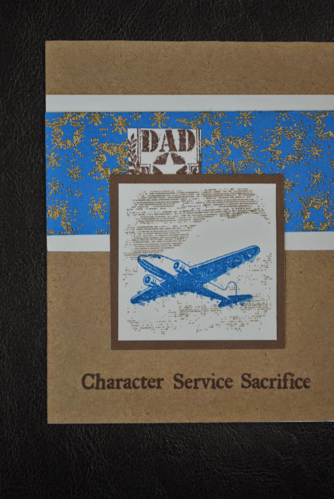 And for my dad. I've had this blue embossed with gold star paper since the last time I lived in Colorado. I loved it, just didn't know where to use it. When I was making this card and was searching though my scrap bag, I saw it, and Voila - it seemed like the perfect fit, and the blues matched great! Yeah for all things coming together. My dad is a great dad and also sacrifices much for his family. I am very blessed to be his only daughter. And blue is his favorite color.