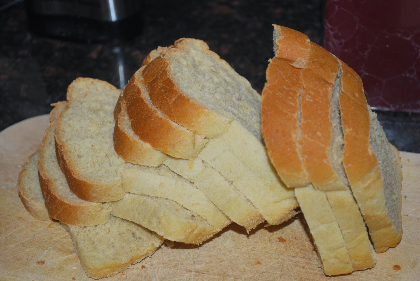 Homemade bread. This is half and half. I'm gradually going to get my family back to 100% whole wheat, if my stomach will let me.