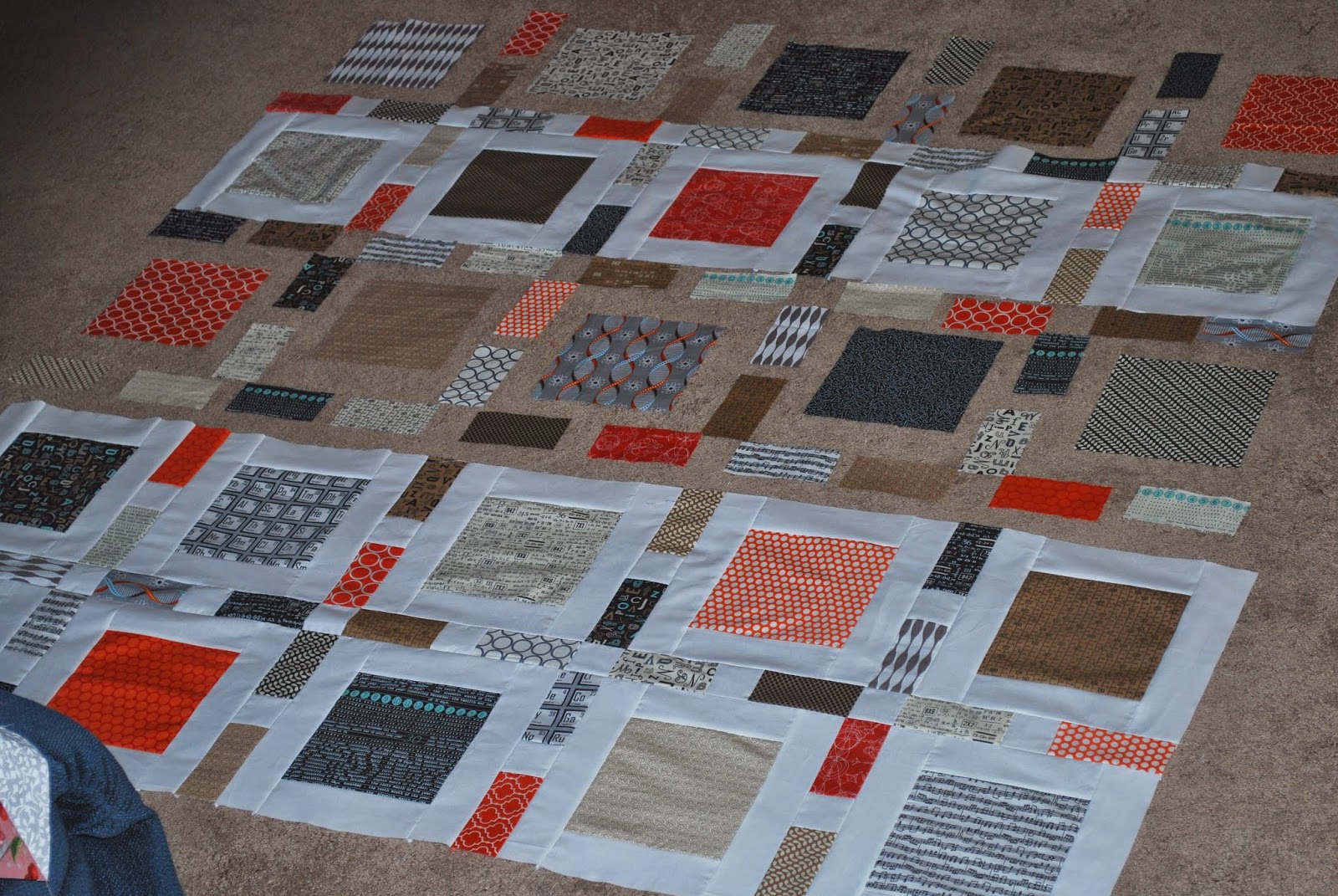 This is a pattern from Camille Roskelley in her book Simply Retro. I used an Elementary by Sweetwater layer cake and some random fabrics I collected mostly online - oranges, music, and scientific prints. Those are things my LittleBuddy likes. This quilt is for him. I should have the top done by the end of the day tomorrow. Then I'll quilt it and hopefully it'll be bound and ready for him by Easter.