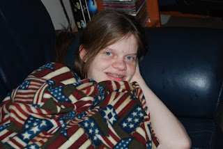Even MyGirl joined in the family experience, wrapped in a patriotic fleece blanket.