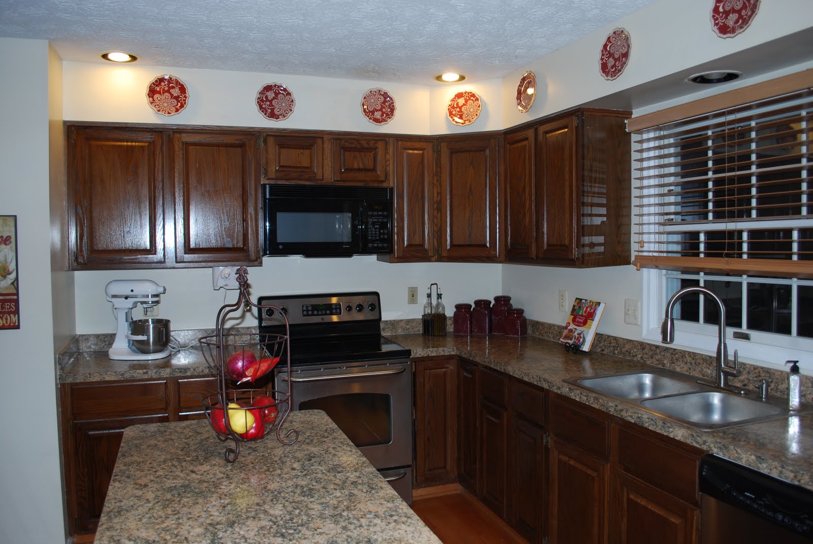 Not a very good picture, but this was as the painter was painting other parts of the kitchen. Its more restful, and will look good with my red dishes above the cabinets.