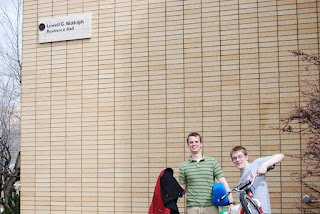 While going to pick up my boy from his dorm - seen here with his cousin and roommate,