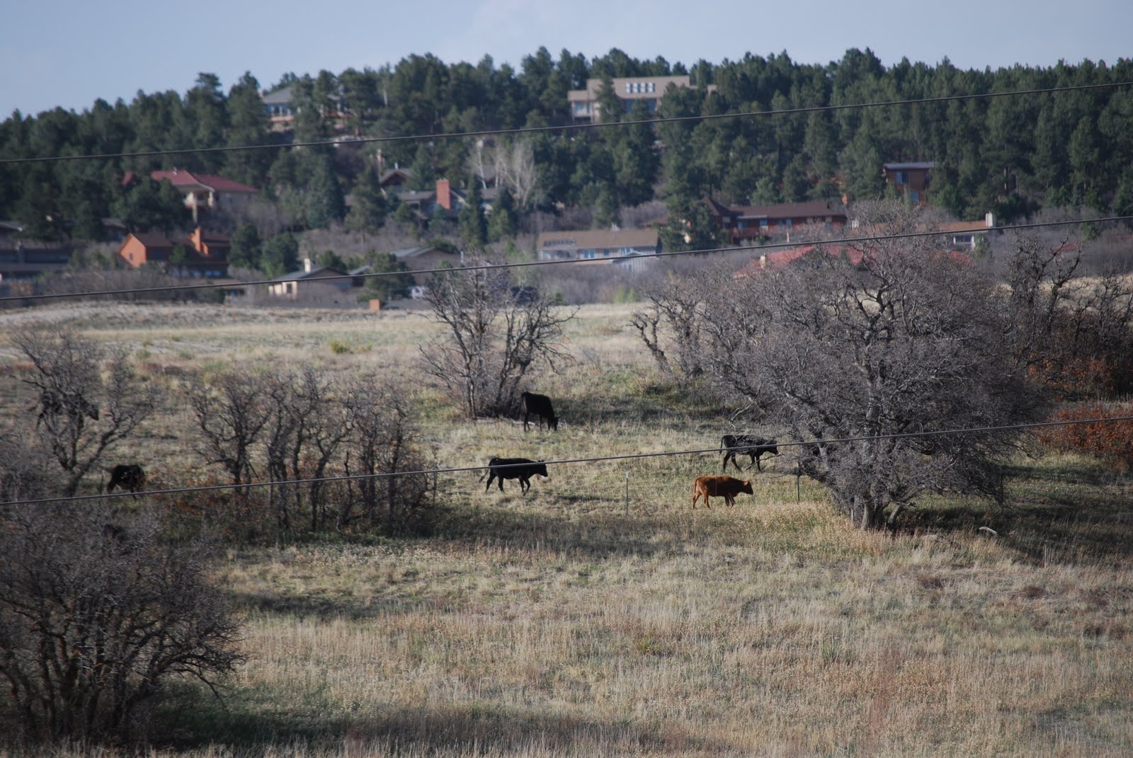 Most of the cattle are black except for the one brown one who is always with them. I can't tell you how many times I've looked over at them and said in my head, "How now brown cow?"