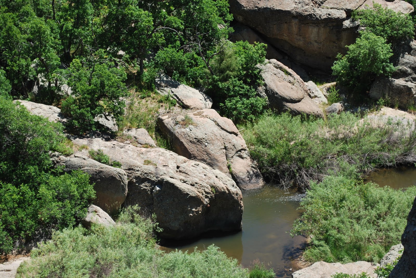 I was happy to take them, until on the way there, BigBuddy informs me that our guide book says the hikes aren't too difficult, but watch out for rattlesnakes. I'm not too worried. That's one person's opinion, but I casually ask the gal who gives us our day pass at this state park, if they've seen any lately. Her response, "Yeah, a bunch down by the damn, and a few around, but just stay on the trails and you should be fine."