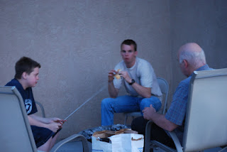 The father was serving as bishop when I was Relief Society President so we have a good working relationship, and the wife and I have served together in YW as counselors, then I was her visiting teacher for several years. She was also LittleBuddy's Cubmaster for his last two years in Cubs, and Cowgirl and I both taught her children piano and I taught their two oldest in Sunday School for a year. Bigbuddy and their oldest daughter have been great friends all through their teenage years, and LittleBuddy and their middle boy were also good friends, so seeing them here, in our little spot on the map, was so fun! . . . Until the Ranger came to warn us that the local rattlesnakes were "having fun playing with people," (his exact words) so stay on the paths. Welcome to the Wild West - where the creatures are scary but the weather is beautiful!