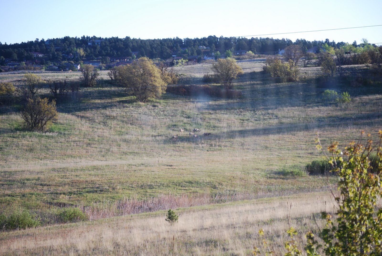 Turned out all worries were for nothing, everything's fine. Still, since we were up, I got to see the deer, who I suspect are always out early. However, yesterday, they sat under the trees for a couple of hours, in the shadows, and I couldn't get good pictures of them, but when they started to move, I quickly grabbed my camera and caught some pictures of this little group. They were taken at 7:41 in the a.m. according to my camera.