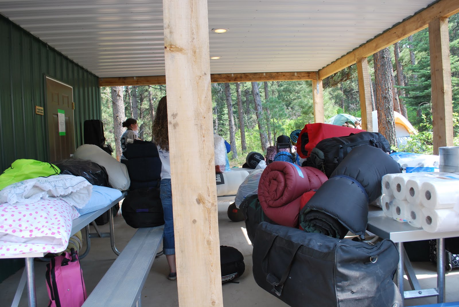 We put it all in the pavilion, just as grey clouds were starting to form overhead. See the door on the left. Well, shortly after this picture was taken, the husband, opened it with the key he had gone to get, and I am not exaggerating when I say about 2,000 moths flew out all at once. I was, of course, directly in their path, and they were in my hair, on my back, etc. Ewwwwww! And, there was only 1 large Costco size pack of TP for 42 girls and 6 leaders and 2 priesthood brothers. . . I think they'll be needing to send the Bishop back into town once in a while.