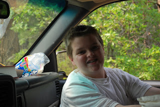 Our Stake Girl's Camp is this week. They do things differently here. Three woman from the ward were called to organize camp that aren't in the YW program. The President and both counselors were going, but I wasn't needed, with six women already up there, so I was happy to volunteer to help drive up girls for a two hour ride on Monday. . . finally a chance to get a photo of MyGirl up close and smiling. The girls were funny, playing the Skittles game half of the way up. . . . making a prediction then calling out the color of a Skittle, and when they stuck their hand in to pick one, and if it was the right color, they thought that prediction would come true. . . lots of laughs and a good way for me to quietly get to know them better.