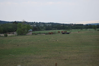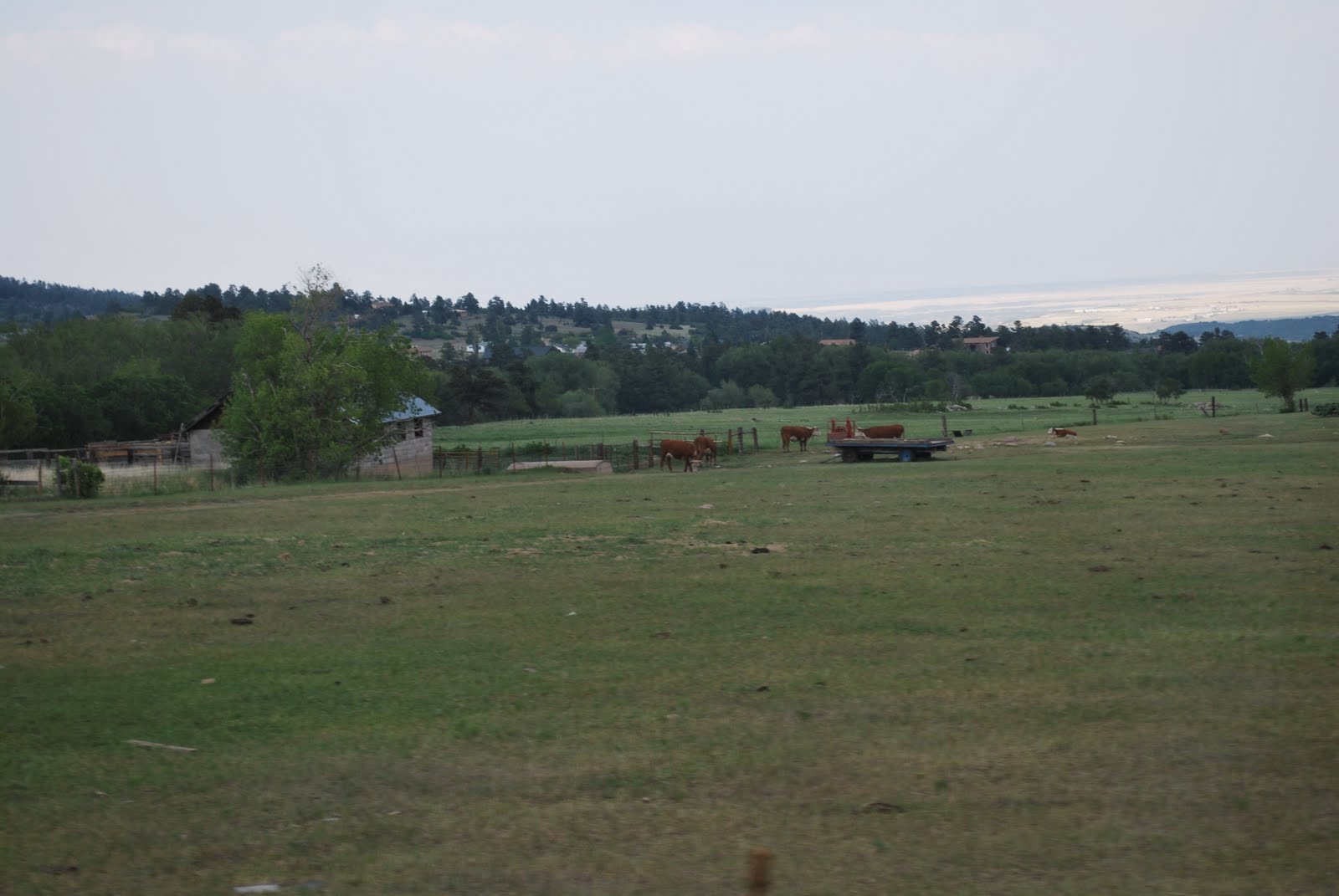 So, instead of just dropping off the girls, I stayed over three hours, and once things were settled LittleBuddy and I left. He was a good trooper. He enjoyed taking pictures of the cows outside of Rye on the way home and the Rye Cafe sold lovely muffins which he enjoyed. It was pretty country. We saw the other leaders coming in when we were leaving. It should be a good week. Just praying there are no bears.