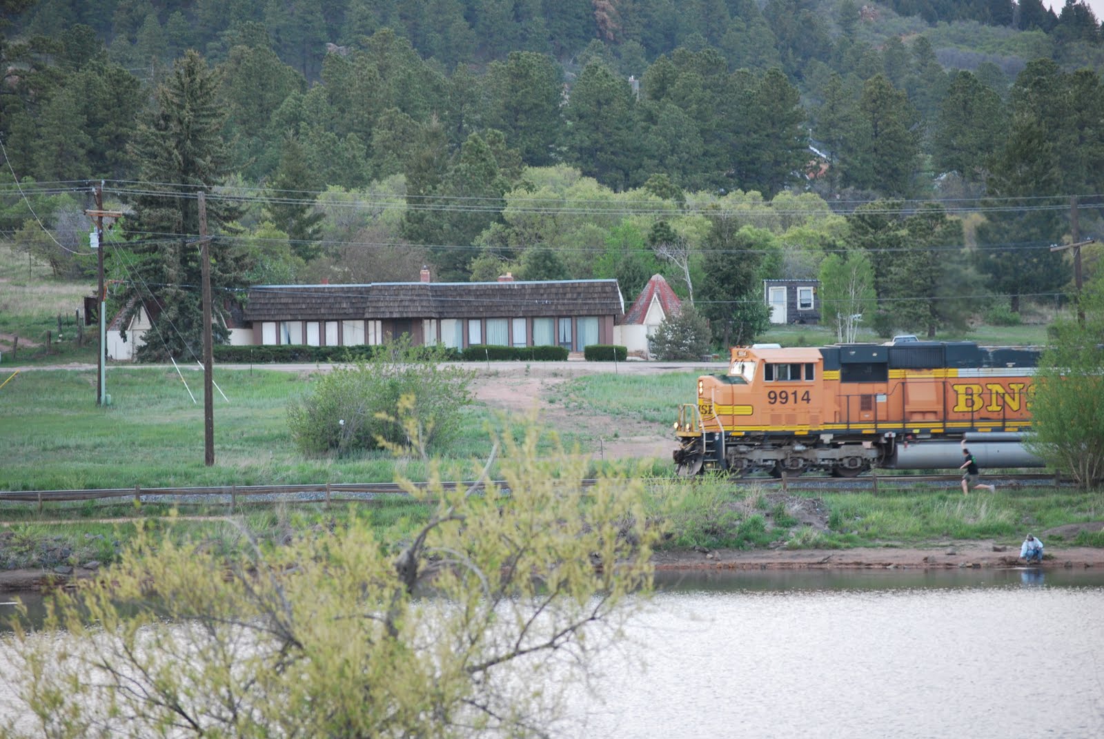 There is a traintrack that runs just west of the lake, and about every hour a train goes by. Most are carrying coal from the mountains down south.