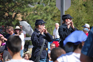 Here you see Pike's Peak in the background. The big boys took the cog railway up it yesterday afternoon, then when they returned, they decided to hike up the mountain in front of it. As they relayed the hike to me, it was so steep it made the one at the family reunion seem flat. BigBuddy said they'd set a goal of taking ten steps, or up to the next tree, and finally made it to the top, and saw some amazing views. Among them, the trail that made a zig zag up to the top, instead of going straight up it like they had just done. In all their excitement, they missed the easy trail, but this was a week of Big Adventure, so this just added to their stories to tell.
