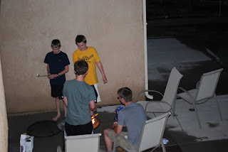 We've had thunderstorms every afternoon, and then they disappeared in the evening. All the boys enjoyed making s'mores every night. I thought I'd planned ahead, but still needed to make a Hershey-bar run, not realizing this was going to be a nightly ritual. That firepit has been the best investment. The kids love it!