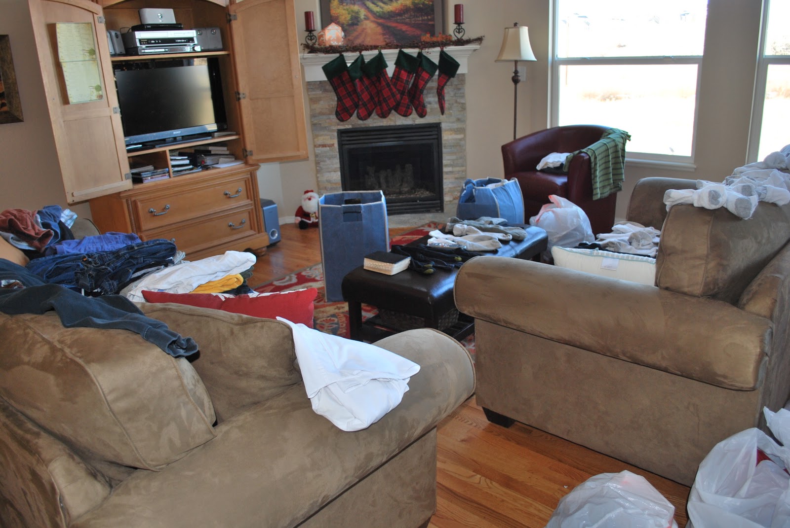 However, Why does reorganizing usually involve some monumental mess beyond what was already a mess to get there? Since BigBuddy is no longer sharing a room with his brother, I attacked both boys' clothes, cleaning, sorting, donating, bagging or returning to its rightful place. That room just needed an overhaul and it got it, with the temporary stopping point being my living room. Then it was his dresser and shoes. Fortunately I had the house to myself for a long time this weekend which allowed me to create such chaos and happily the living room is back to its peaceful uncluttered self.